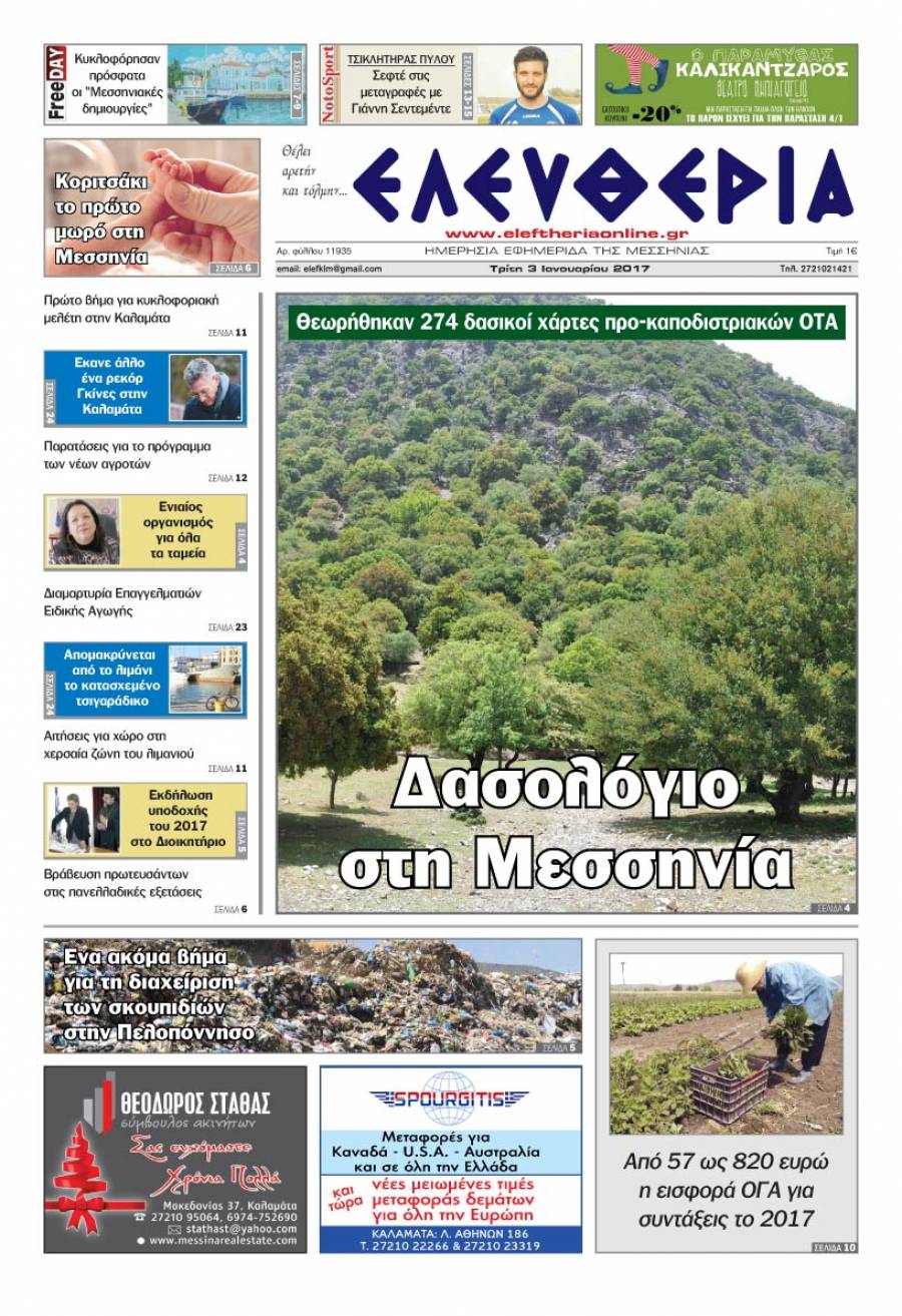 Το πρωτοσέλιδο της "Ελευθερίας" Tρίτη 3 Ιανουαρίου 2016 Για να κατεβάσετε το αρχείο πατήστε πάνω στο κουμπί που γράφει download pdf