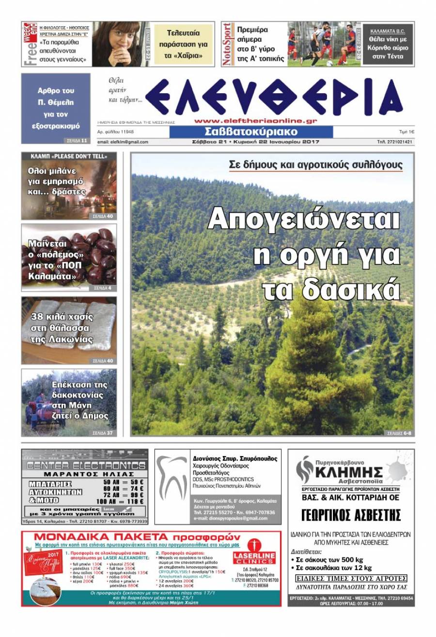 Το πρωτοσέλιδο της "Ελευθερίας Σαββατοκύριακο" 21-22 Ιανουαρίου 2017