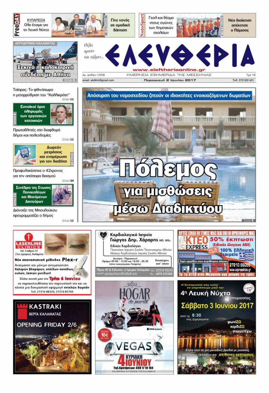 Το πρωτοσέλιδο της "Ελευθερίας" - Παρασκευή 2 Ιουνίου 017 Για να κατεβάσετε το αρχείο πατήστε πάνω στο κουμπί που γράφει download pdf