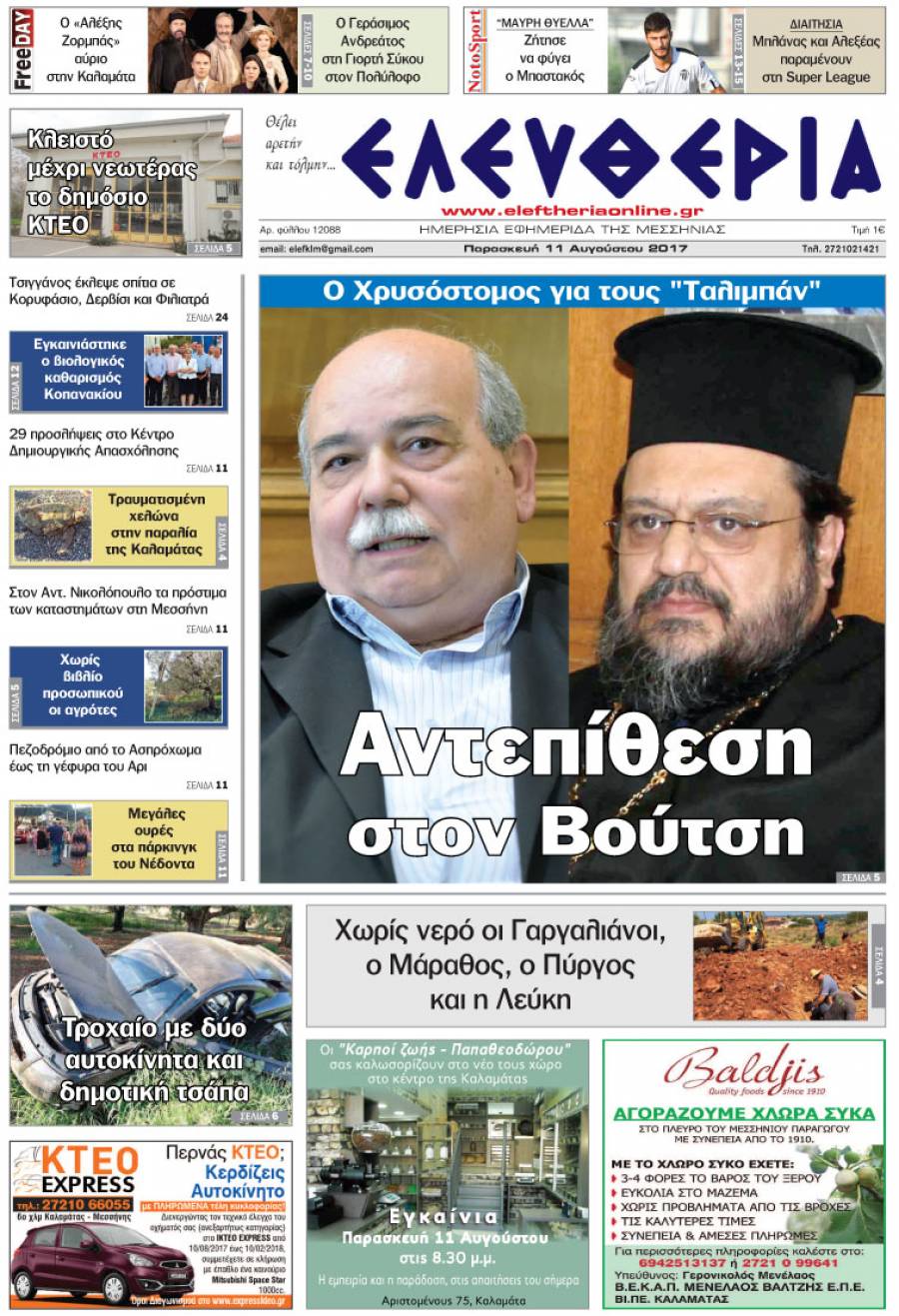 "Ελευθερία" - Παρασκευή 11 Αυγούστου 2017