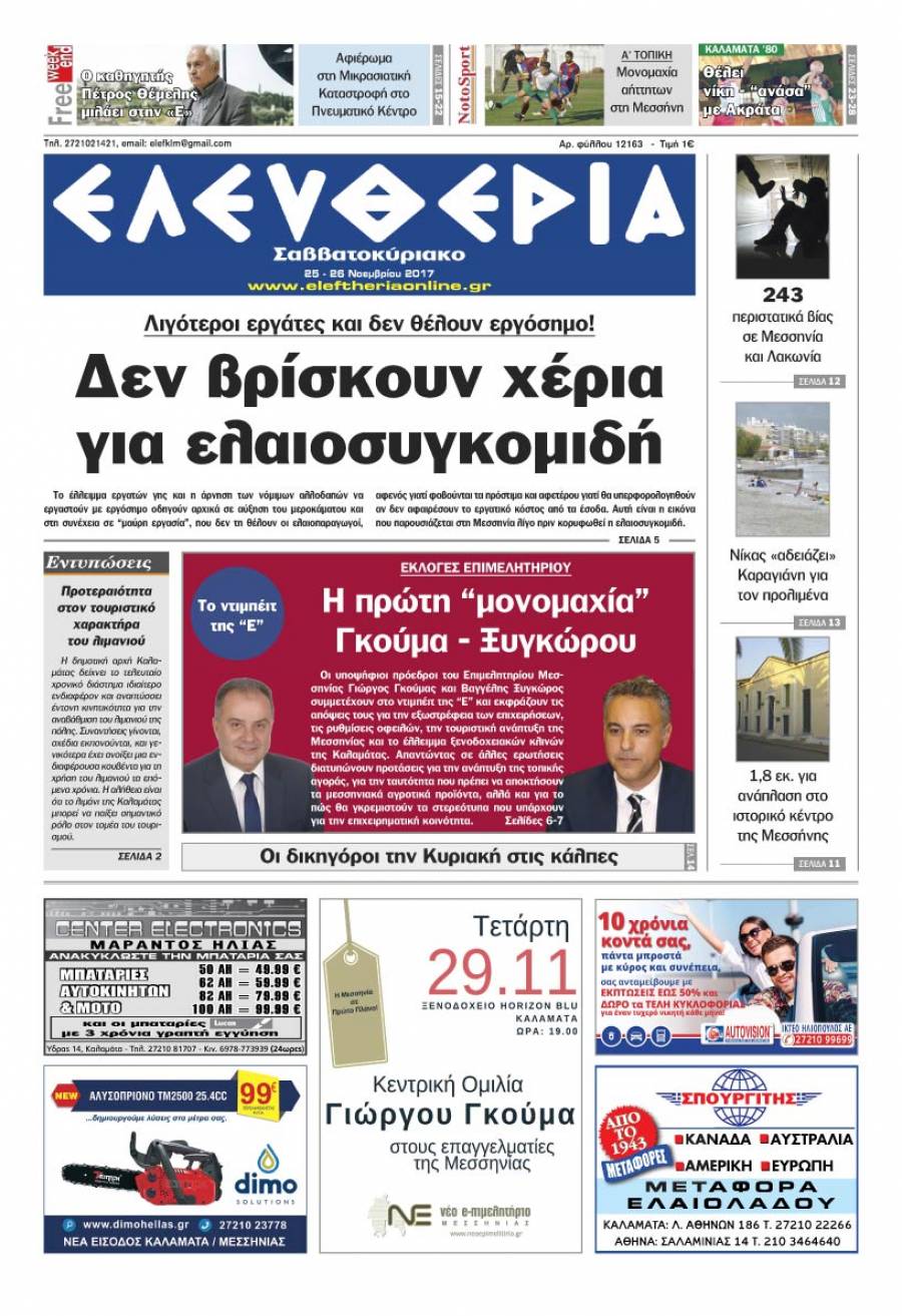 "Ελευθερία Σαββατοκύριακο" 25-26 Νοεμβρίου 2017