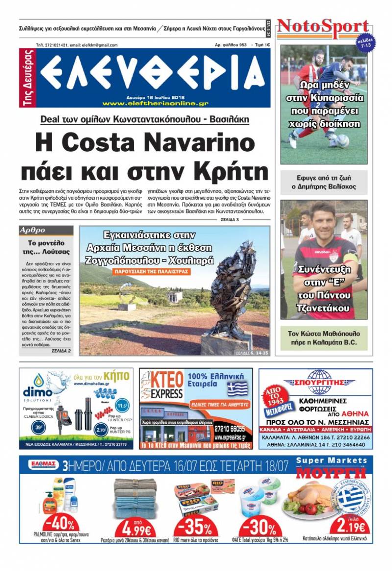 Το πρωτοσέλιδο της "Ελευθερίας της Δευτέρας" - 16 Ιουλίου 2018 Για να κατεβάσετε το αρχείο πατήστε πάνω στο κουμπί που γράφει download pdf