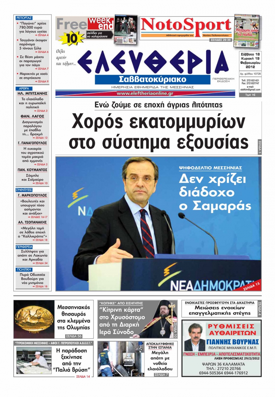 Ελευθερία Σαββατοκύριακου 18-19 Φεβρουαρίου 2012 - Εντυπη έκδοση