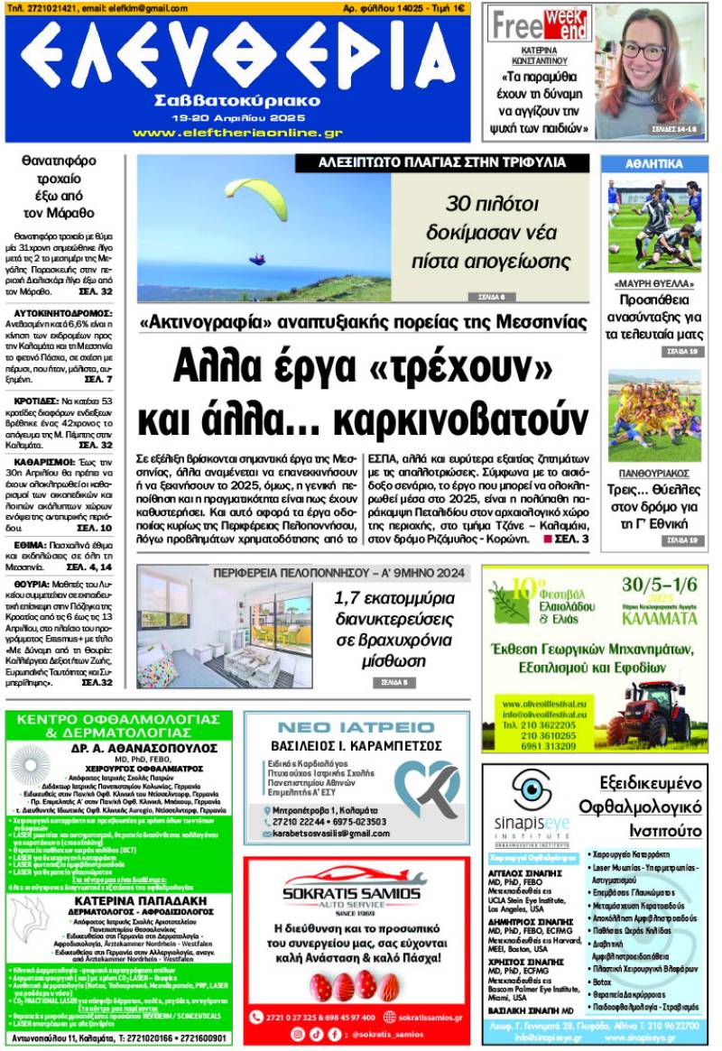 Το πρωτοσέλιδο της "Ελευθερίας Σαββατοκύριακο" 19-20 Απριλίου 2025