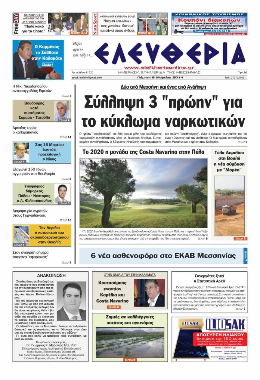 Το πρωτοσέλιδο της "Ελευθερίας" της Πέμπτης 6 Μαρτίου 2014 Για να κατεβάσετε το αρχείο πατήστε πάνω στο κουμπί που γράφει download pdf