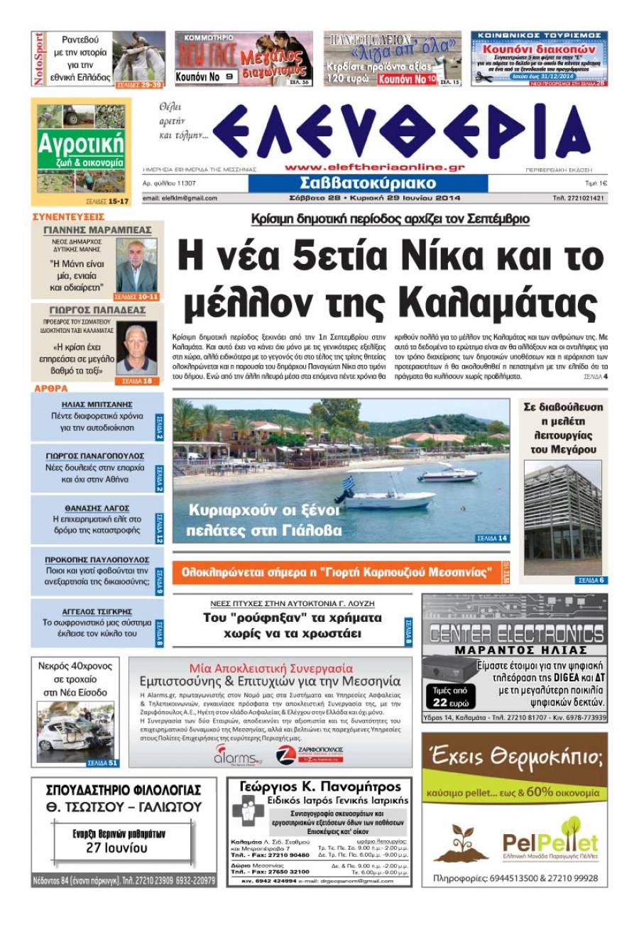 Το πρωτοσέλιδο της "Ελευθερίας" Σαββατοκύριακο 28-29 Ιουνίου 2014 Για να κατεβάσετε το αρχείο πατήστε πάνω στο κουμπί που γράφει download pdf
