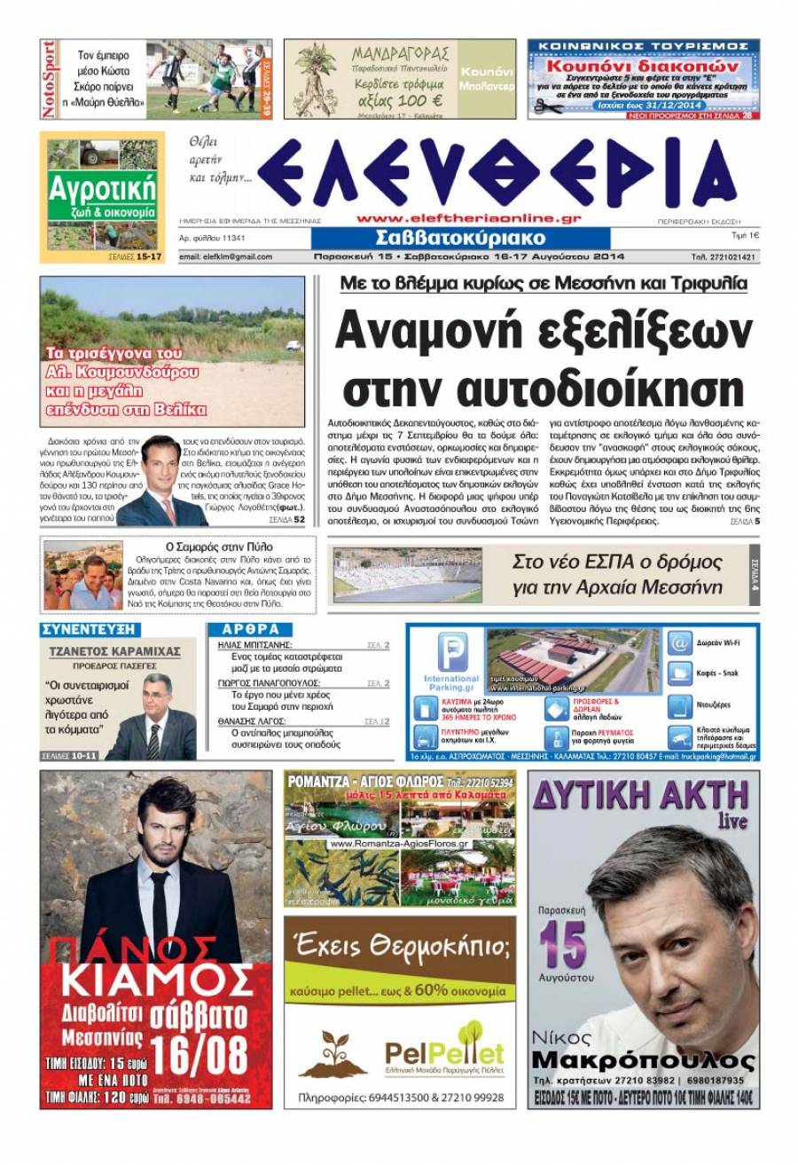 Ελευθερία Παρασκευή 15 - Σαββατοκύριακο 16-17 Αυγούστου 2014