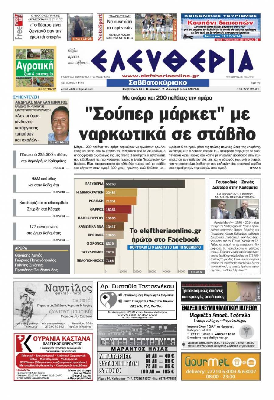 Το πρωτοσέλιδο της "Ελευθερίας" Σαββατοκύριακο 6-7 Δεκεμβρίου 2014