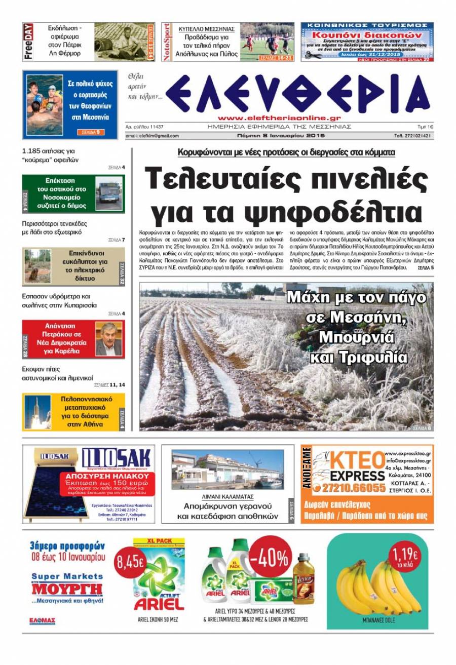 Το πρωτοσέλιδο της "Ελευθερίας" της Πέμπτης 8 Ιανουαρίου 2015 Για να κατεβάσετε το αρχείο πατήστε πάνω στο κουμπί που γράφει download pdf