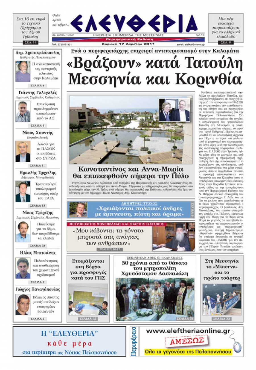 Το πρωτοσέλιδο της "Ελευθερίας" 17 4 2011 Για να κατεβάσετε το αρχείο πατήστε πάνω στο κουμπί που γράφει download pdf