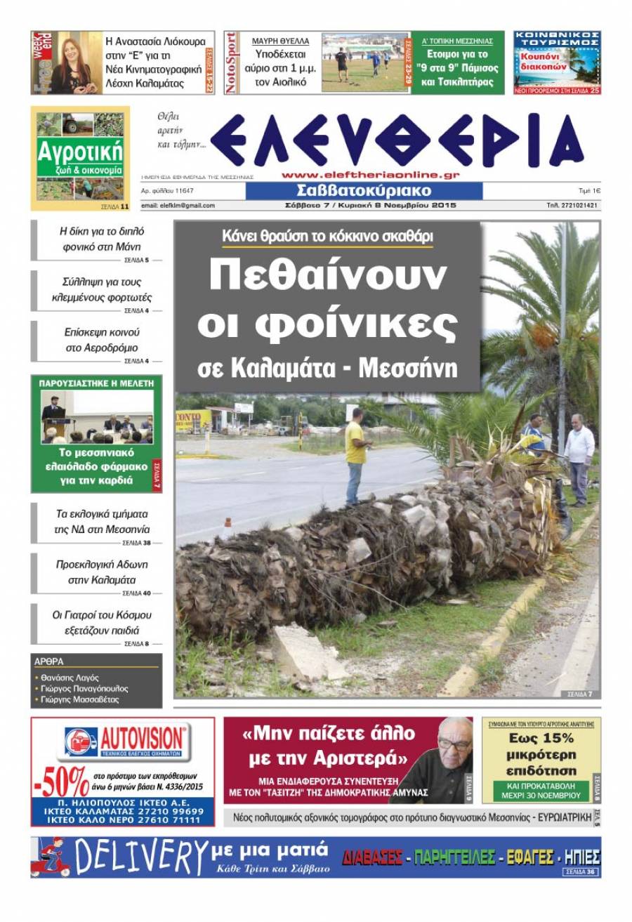 Το πρωτοσέλιδο της "Ελευθερίας" - Σαββατοκύριακο 7-8 Νοεμβρίου 2015 Για να κατεβάσετε το αρχείο πατήστε πάνω στο κουμπί που γράφει download pdf