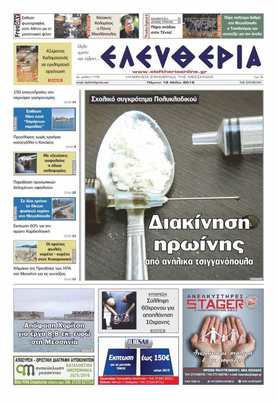 Το πρωτοσέλιδο της "Ελευθερίας" - Πέμπτη 19 Μαΐου 2016 Για να κατεβάσετε το αρχείο πατήστε πάνω στο κουμπί που γράφει download pdf