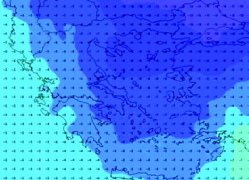 Με την πολική αέρια μάζα να βρίσκεται πλέον στη γειτονιά μας και να κινείται ολοένα και πιο νότια, θα κυλήσουν οι επόμενες αρκετές ημέρες προκαλώντας βαρυχειμωνιά σε μεγάλο μέρος της χώρας μας.