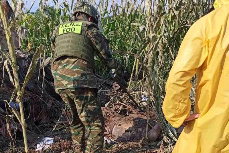 Οι συνολικά οχτώ ομάδες των πυροτεχνουργών καταβάλλουν καθημερινά μεγάλη προσπάθεια προκειμένου να επισπεύσουν τη συγκέντρωση και εκκαθάριση της περιοχής από τα πυρομαχικά που διασκορπίστηκαν μέσα στις αγροτικές εκτάσεις κατά την πρόσκρουση του αεροπλάνου.