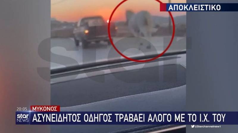 Αυτή τη φορά συνέβη στη Μύκονο και ο οδηγός αγροτικού αυτοκινήτου έδεσε με σχοινί με άλογο και κυκλοφορούσε σε κεντρικό δρόμο του νησιού.