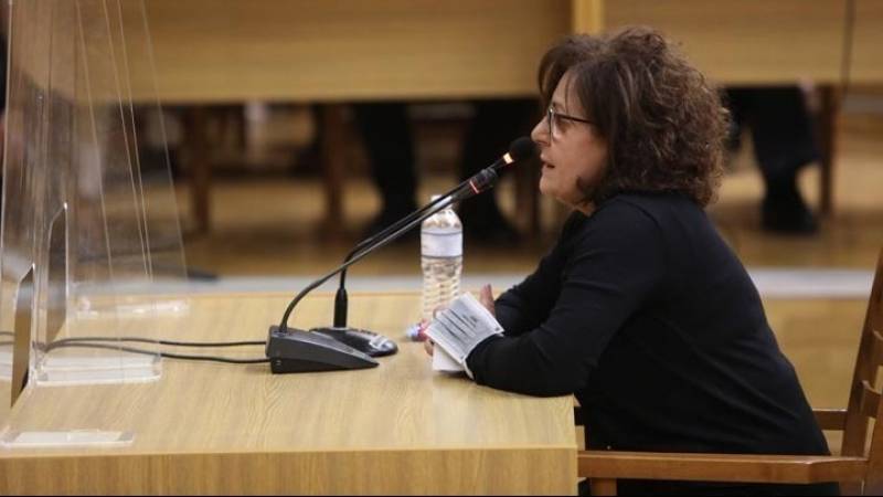 Η πρόεδρος αμέσως ζήτησε από την κυρία Φύσσα να περάσει έξω και εκείνη όρθια αφού της απάντησε ότι «θα περάσω γιατί δεν μπορώ να τον ακούω» βγήκε από την αίθουσα.