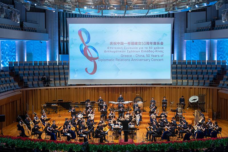 Με μια μεγάλη συναυλία στο εμβληματικό Εθνικό Κέντρο Παραστατικών Τεχνών (National Center of the Performing Arts- NCPA) του Πεκίνου, την οποία παρακολούθησαν ο Κινέζος υπουργός Πολιτισμού και Τουρισμού, Χου Χεπίνγκ, και περίπου 1.000 καλεσμένοι από τον πολιτικό, διπλωματικό, οικονομικό και καλλιτεχνικό κόσμο της κινεζικής πρωτεύουσας, η Ελλάδα εόρτασε το βράδυ της Τετάρτης στην κινεζική πρωτεύουσα την επέτειο των 50 ετών από τη σύναψη διπλωματικών σχέσεων με τη Λαϊκή Δημοκρατία της Κίνας, όπως αναφέρεται σε ανακοίνωση της ελληνικής πρεσβείας στο Πεκίνο.