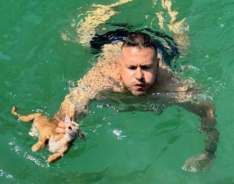 Άνδρας, μέλος πληρώματος πλωτού σκάφους, άκουσε ξαφνικά κλάματα, όταν εντόπισε ένα μικρό γατάκι στη θάλασσα να παλεύει να μην πνιγεί.