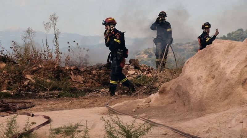 Για την κατάσβεση επιχειρούν 30 πυροσβέστες, ένα πεζοπόρο τμήμα, οκτώ οχήματα, δύο αεροσκάφη και ένα ελικόπτερο.