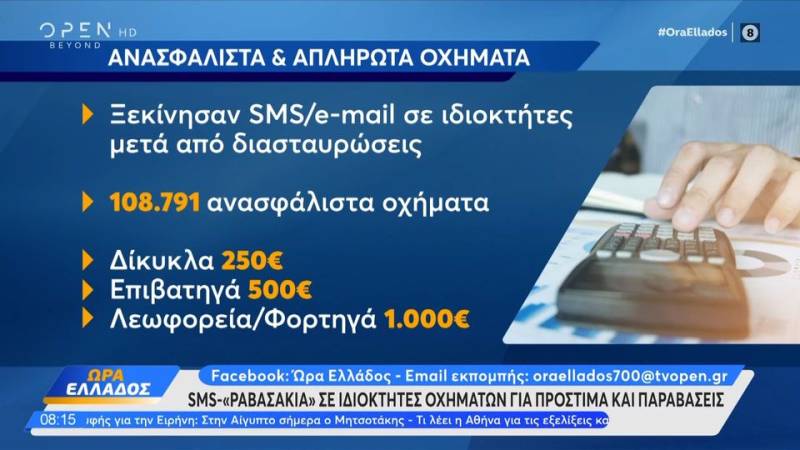 Ξεκίνησαν οι πρώτοι διασταυρωτικοί έλεγχοι – Ειδοποιήσεις μέσω SMS, email και ταχυδρομείου για την κυκλοφορία οχημάτων χωρίς ασφάλιση ή χωρίς καταβολή τελών κυκλοφορίας, με αποτέλεσμα να έχουν ήδη αποσταλεί περίπου 220.000 ειδοποιήσεις σε ιδιοκτήτες οχημάτων.