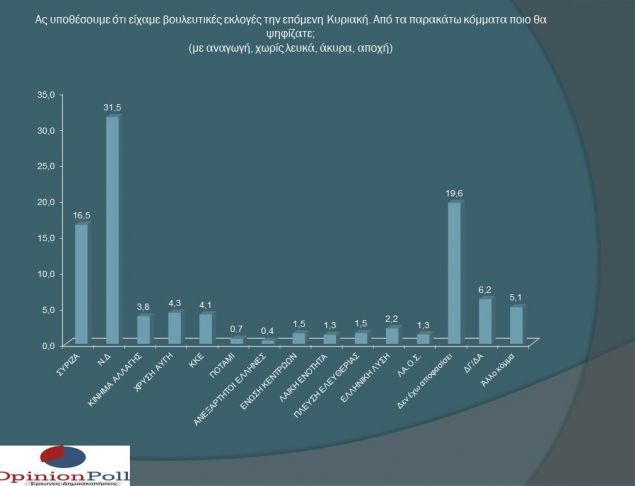 Ειδικότερα, στην πρόθεση ψήφου με αναγωγή τα κόμματα λαμβάνουν τα εξής ποσοστά: