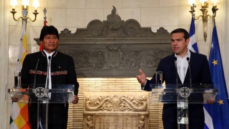 Τα συγχαρητήρια του στον πρωθυπουργό Αλέξη Τσίπρα έδωσε ο Πρόεδρος της Βολιβίας, Έβο Μοράλες, επειδή, όπως είπε, με τη διακυβέρνησή του κατάφερε πολύ γρήγορα να σταθεί η Ελλάδα στα πόδια της και να προχωρήσει μπροστά.