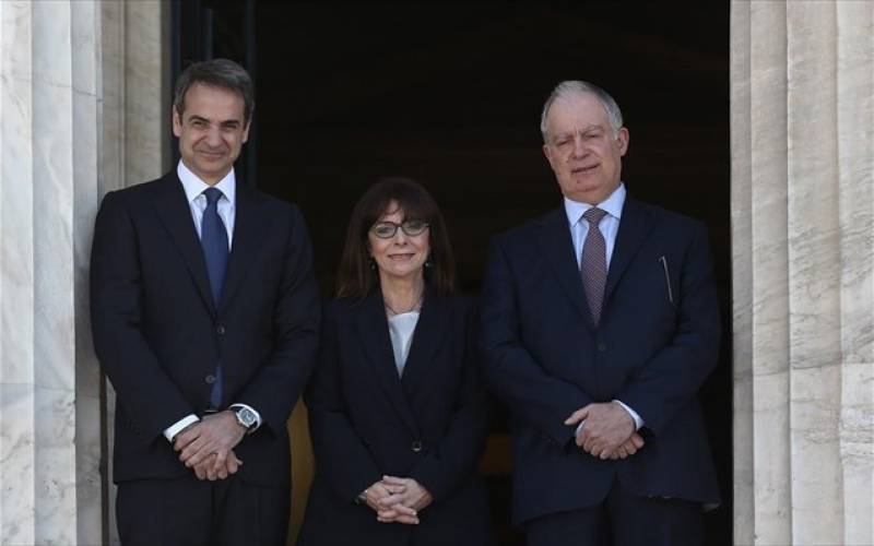 Νωρίτερα, η κα Σακελλαροπούλου έγινε δεκτή στο Μέγαρο της Βουλής από τον πρόεδρο του κοινοβουλίου Κων. Τασούλα και τον πρωθυπουργό Κυρ. Μητσοτάκη, ενώ άγημα των Ενόπλων Δυνάμεων απέδιδε τιμές. Ως είθισται, κόκκινοι τάπητες στρώθηκαν στους διαδρόμους του κτιρίου ωστόσο τις παραδοσιακές χειραψίες αντικατέστησαν οι "επινεύσεις", όπως απαιτεί η περίσταση.