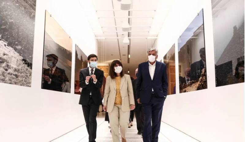 H κυρία Σακελλαροπούλου, εξέφρασε τη χαρά της για την επίσκεψή της στον χώρο του Εθνικού Μουσείου Σύγχρονης Τέχνης, καθώς και για το γεγονός ότι επανέρχεται σταδιακά στην πλήρη καθημερινή λειτουργία του.