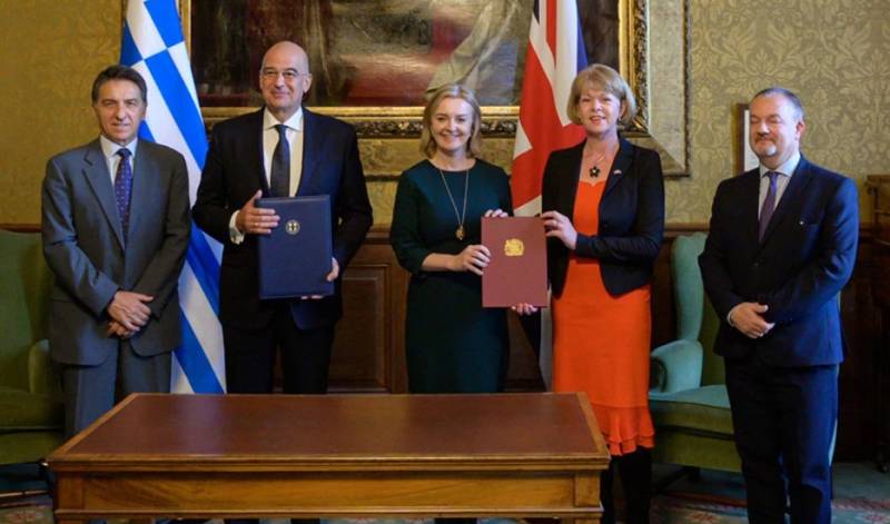 Υπέγραψα με την ΥΠΕΞ του Ηνωμένου Βασιλείου @trussliz Μνημόνιο Κατανόησης για το Στρατηγικό Διμερές Πλαίσιο μεταξύ ????. Ελλάδα & Ην. Βασίλειο ανοίγουν νέο κεφάλαιο στις σχέσεις τους μετά το Brexit & εμβαθύνουν τη συνεργασία τους σε εξ. πολιτική, άμυνα & ευρύ φάσμα άλλων τομέων. pic.twitter.com/XcCS9uKabH