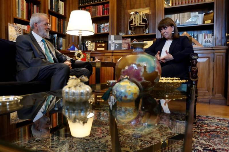 «Κ. Πρόεδρε σας κάλεσα διότι όπως θα γνωρίζετε φτάσαμε στην τελευταία πρόβλεψη του Συντάγματος, τη λύση της υπηρεσιακής κυβέρνησης και ανακοίνωσα ήδη ότι σκοπεύω να προτείνω εσάς εκ των τριών προέδρων, να σας αναθέσω την εντολή πλέον σχηματισμού κυβέρνησης, που θα διενεργήσει τις εκλογές» είπε η κ. Σακελλαροπούλου απευθυνόμενη στον κ. Σαρμά. με τον ίδιο να απαντά: «Κα Πρόεδρε, σας ευχαριστώ πολύ για τη μεγάλη τιμή. Είναι συνταγματική μου υποχρέωση και συγχρόνως και καθήκον μου ως πολίτη».