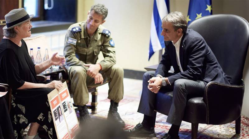 Ο πρεσβευτής του Ισραήλ στην Ελλάδα, Νόαμ Κατς, ανήρτησε στον προσωπικό του λογαριασμό στην πλατφόρμα Χ σχετικές φωτογραφίες από τη συνάντηση γράφοντας: «Ο Έλληνας πρωθυπουργός Κυριάκος Μητσοτάκης συνάντησε πριν από λίγο στο Ισραήλ συγγενείς Ισραηλινών ομήρων που απήχθησαν από τους τρομοκράτες της Χαμάς πριν από δύο εβδομάδες».