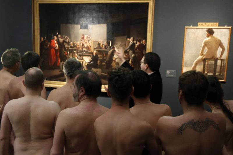 Η ιστοσελίδα του μουσείου υποσχόταν στους επισκέπτες την ευκαιρία να “θαυμάσουν τα έργα ποζάροντας στην ίδια κατάσταση με αυτά, εντελώς γυμνοί και περιτριγυρισμένοι από άλλα σώματα”.