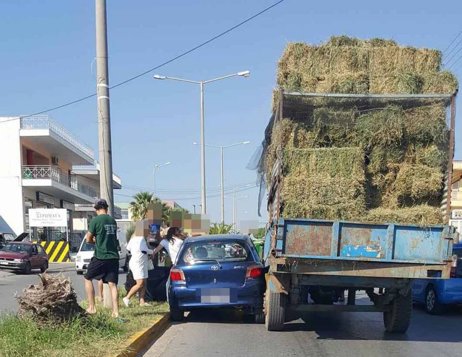 Φορτηγό με σανό τράκαρε με ΙΧ στη Μεσσήνη