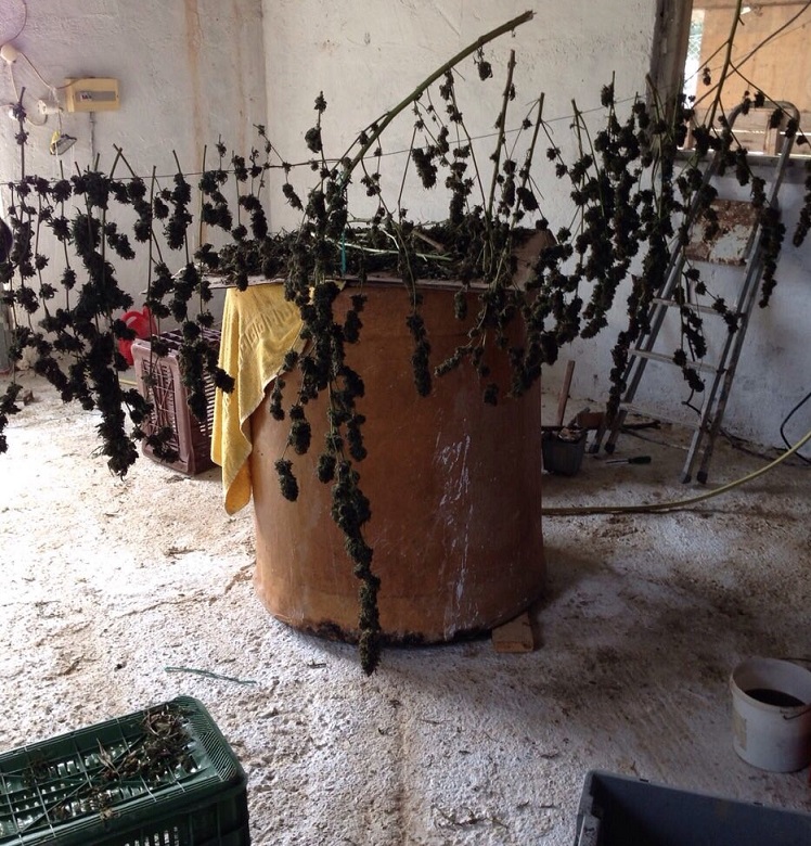 Σε έρευνα από τη Δίωξη Ναρκωτικών Καλαμάτας, που έγινε τόσο στην αποθήκη, όσο και σε αγρόκτημα του συλληφθέντα στην αγροτική περιοχή Αγιος Δημήτριος στην Κορώνη, βρέθηκαν και κατασχέθηκαν 2.123 γραμμάρια χασίς και 4 χασισόδεντρα ύψους από 15 έως 70 εκατοστά, καθώς επίσης τμήματα από ακόμα 6 χασισόδεντρα, ένα πριόνι και ένα κινητό τηλέφωνο.