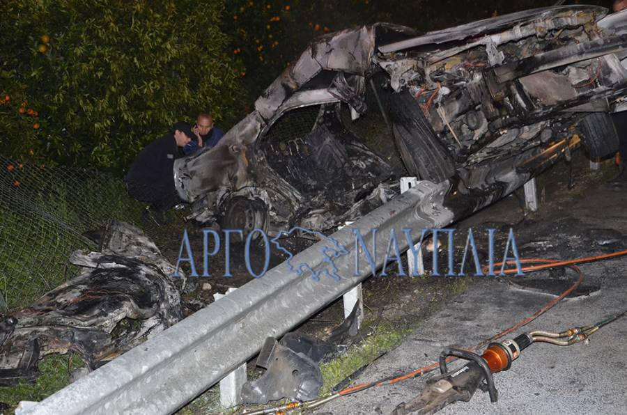 Τα δύο οχήματα συγκρούστηκαν στην ευθεία ενώ πρέπει να έτρεχαν με μεγάλη ταχύτητα. Στο ένα εκδηλώθηκε φωτιά. Ο οδηγός του εγκλωβίστηκε και κάηκε ζωντανός. Το αυτοκίνητο μάρκας ΤΟΥΟΤΑ πέρασε τα κιγκλιδώματα και καταστράφηκε ολοσχερώς από την πρόσκρουση και την φωτιά σε σημείο να μην αναγνωρίζεται. Ούτε καν οι πινακίδες ή το χρώμα δεν φαίνονται σε αυτή την μάζα σιδερικών.