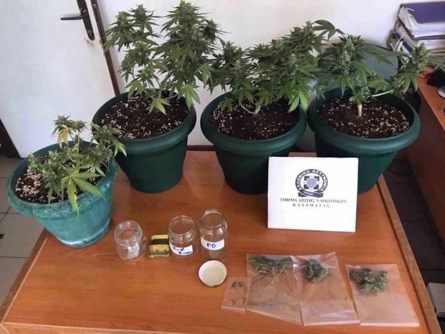 Αυτό διαπίστωσαν αστυνομικοί του τμήματος Δίωξης Ναρκωτικών της Υποδιεύθυνσης Ασφαλείας Καλαμάτας σε κατ' οίκον έρευνα. Τα φυτά είχαν ύψος από 20 έως 35 εκατοστά. Παράλληλα σε τρία γυάλινα βάζα είχε χασίς συνολικού βάρους 14 γραμμαρίων, επιμερισμένη σε δύο ποσότητες των 4,3 γραμμαρίων και των 5,3, κι ακόμα 0,1 γραμμάριο σε μορφή σοκολάτας. Η έρευνα έγινε το πρωί της Πέμπτης και ο 53χρονος συνελήφθη.