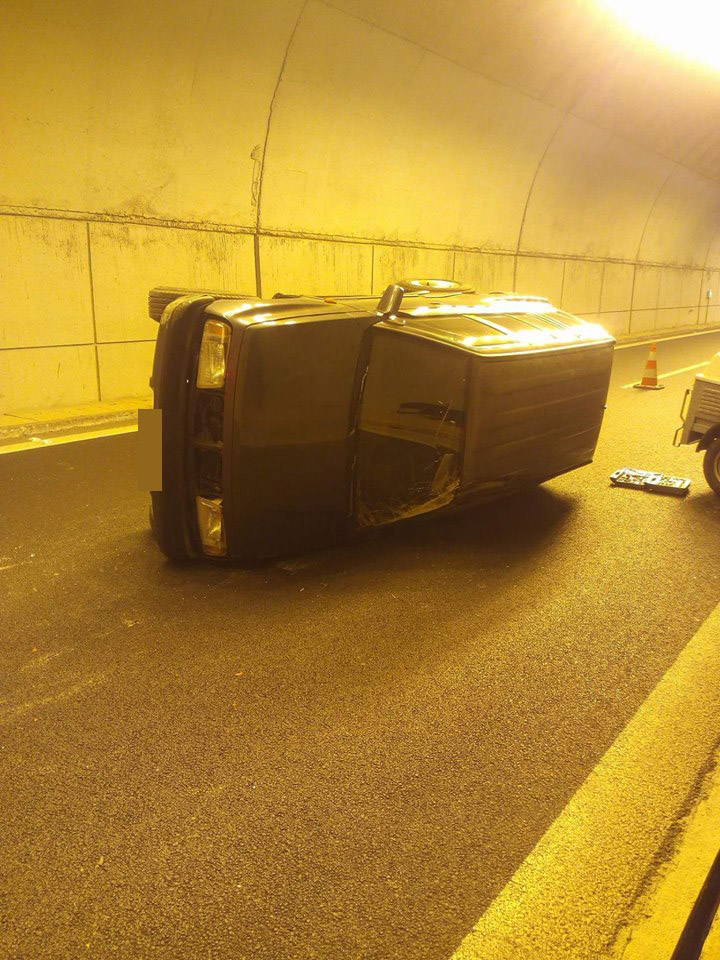 Στελέχη της ίδιας υπηρεσίας μαζί με συναδέλφους τους από τη Μεγαλόπολη επενέβησαν και σε τροχαίο στον αυτοκινητόδρομο, όπου σε μία από τις μικρές σήραγγες στο ύψος της Τσακώνας ένα αυτοκίνητο ξέφυγε από την πορεία του και ανετράπη με αποτέλεσμα τον ελαφρύ τραυματισμό δύο ατόμων.