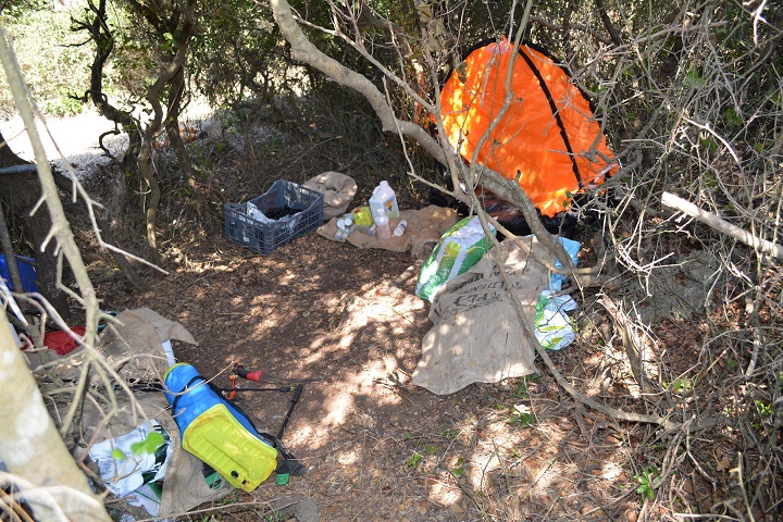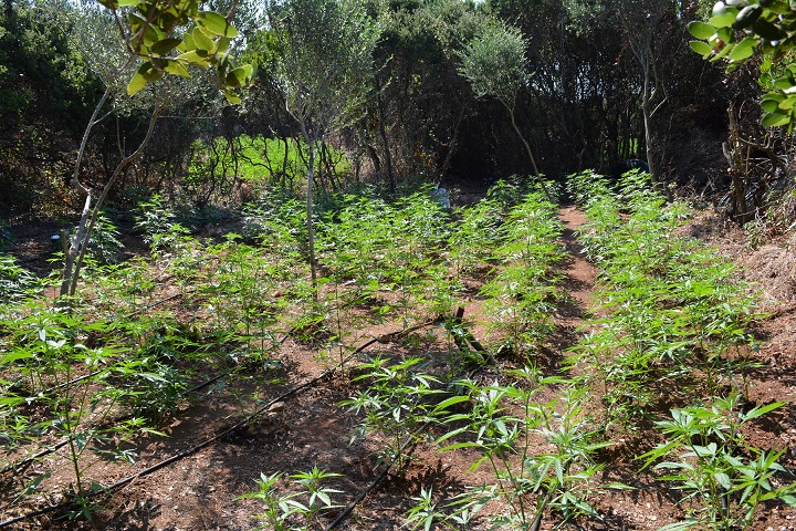 Τα φυτά, ύψους από 0,5 έως 70 εκατοστά, ήταν φυτεμένα σε 9 διαδοχικές πεζούλες και ποτίζονταν με σταγονίδια που περνούσαν από τη ρίζα κάθε δενδρυλλίου ξεχωριστά. Οι καλλιεργητές φαίνεται μάλιστα ότι έμεναν μέσα στο χώρο της χασισοφυτείας για να την φυλάνε, γιατί οι αστυνομικοί βρήκαν μια σκηνή, ρούχα, σακίδια και τρόφιμα, καθώς και πολλά εργαλεία, κουτιά από φυτοφάρμακα και λιπάσματα. Αξίζει να σημειωθεί ότι για να μπουν οι αστυνομικοί μέσα στην καλλιέργεια αναγκάστηκαν και σκαρφάλωσαν τα βράχια, προσεγγίζοντας από την απόκρημνη παραλία.
