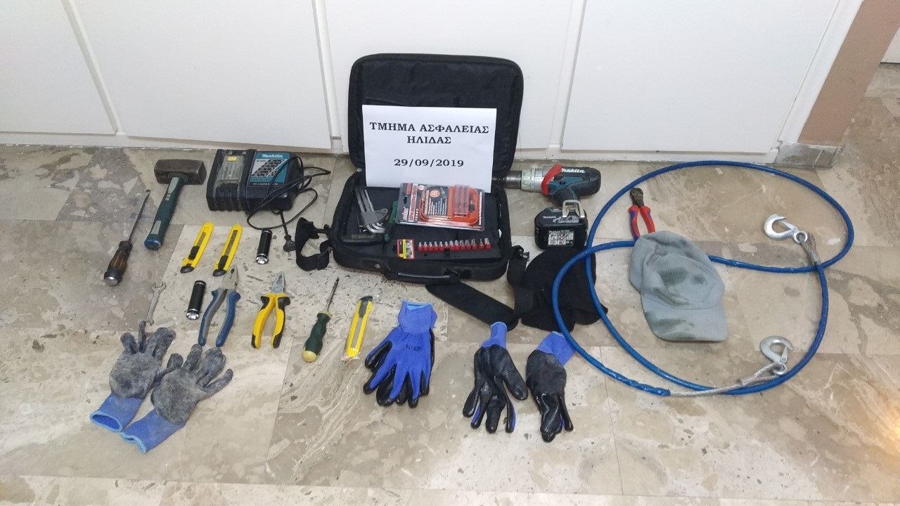 Οι αστυνομικοί βρήκαν στην κατοχή των συλληφθέντων γάντια και εργαλεία, όπως κόφτες, πένσες, κατσαβίδια, συρματόσχοινο με γάντζους κά, τα οποία χρησιμοποιούσαν για την αφαίρεση και την έλξη των καλωδίων χαλκού.