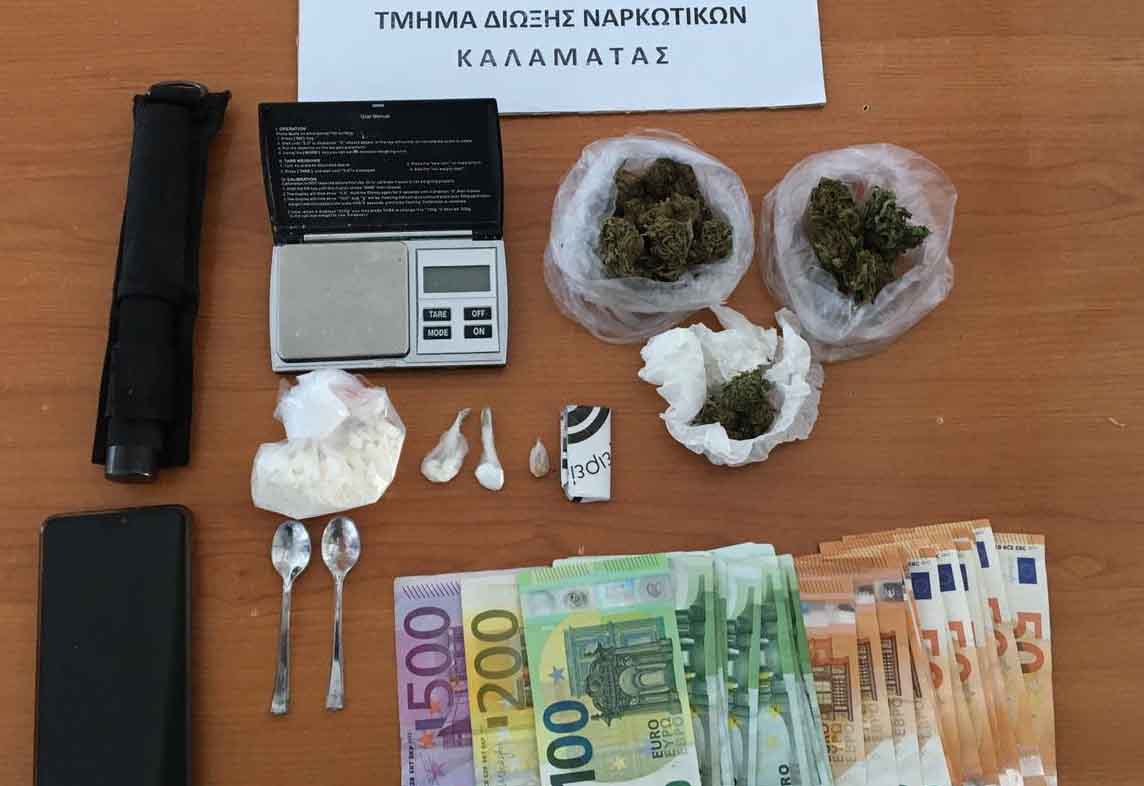 Δύο συλλήψεις έγιναν από αστυνομικούς του Τμήματος Δίωξης Ναρκωτικών Καλαμάτας το μεσημέρι της Πέμπτης, καθώς σε διαφορετικά σπίτια υπόπτων για διακίνηση ναρκωτικών βρέθηκαν ποσότητες κοκαΐνης και χασίς.