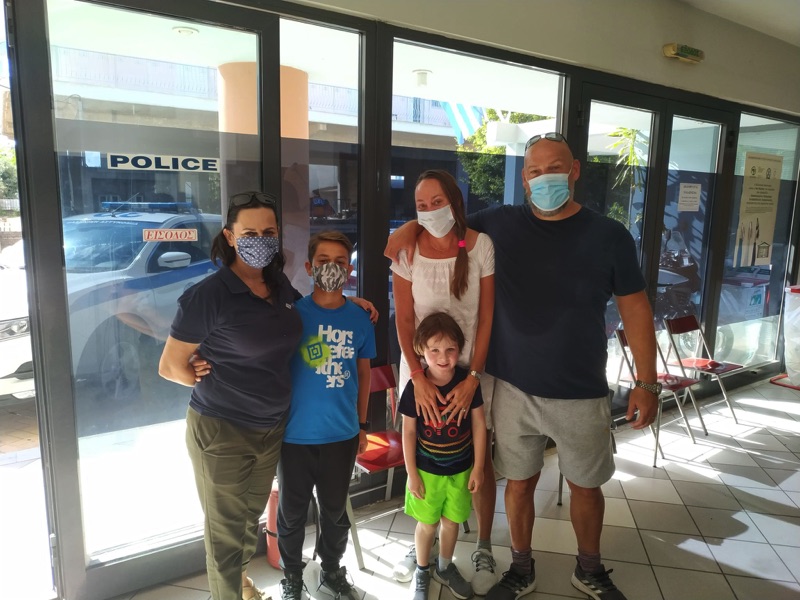 * Στη φωτογραφία ο 12χρονος Δημήτρης Σαλιγκαριάς (με την μπλέ μπλούζα) μαζί με την μητέρα του και την οικογένεια του Βρετανού τουρίστα