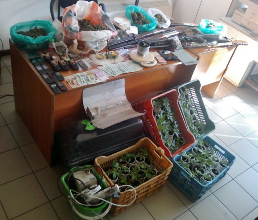 Όπως επίσης προέκυψε, δύο από τα μέλη της εγκληματικής οργάνωσης, ο 43χρονος και ο 42χρονος, μαζί με ακόμη ένα άτομο, είχαν συμμετοχή στην καλλιέργεια μεγάλης φυτείας κάνναβης, η οποία είχε εντοπιστεί την 18-9-2012 σε δασώδη περιοχή του Δήμου Τριφυλλίας και αποτελούνταν από -992- δενδρύλλια κάνναβης. (σχετικό το από 19-9-2012 Δελτίο Τύπου της Υπηρεσίας μας) Σε έρευνες που πραγματοποιήθηκαν στις οικίες των συλληφθέντων, βρέθηκαν συνολικά και κατασχέθηκαν: