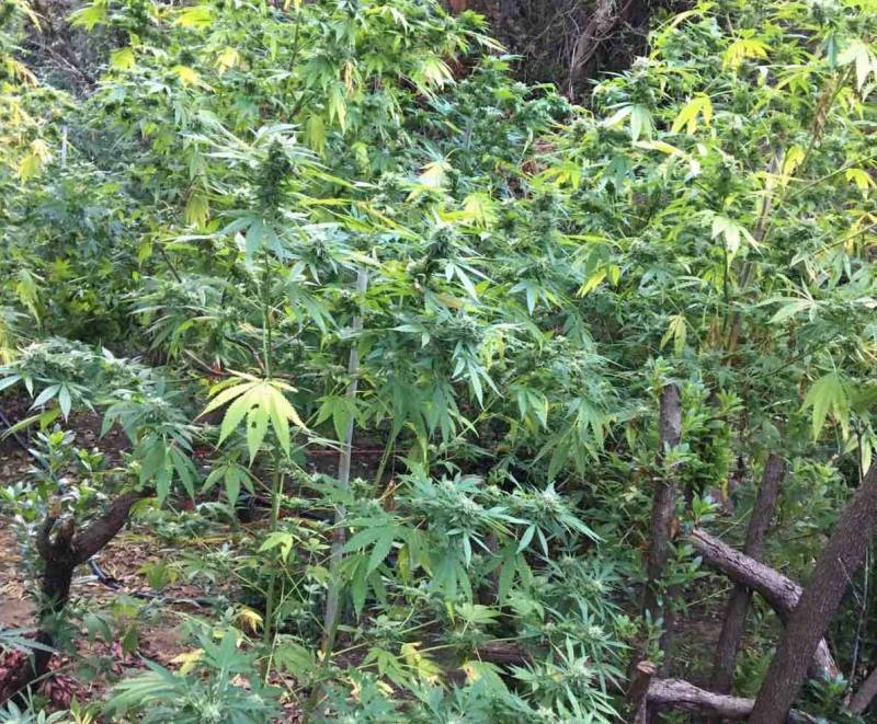 Τα φυτά, τα οποία είχαν αρχίσει να κιτρινίζουν, έφταναν τα 2,2 μέτρα και οι καλλιεργητές τα είχαν δεμένα με καλάμια για να μην λυγίσουν και σπάσουν από το βάρος. Είχαν επίσης εγκαταστήσει αυτόματο πότισμα με σταγονίδια στη ρίζα κάθε δέντρου, εξασφαλίζοντας το νερό από αγωγό άρδευσης της περιοχής. Η φυτεία καλλιεργούνταν σε μια έκταση 30 τ.μ. την οποία οι καλλιεργητές είχαν καθαρίσει από την άγρια βλάστηση. Φεύγοντας, άφησαν μέσα τον καλλιεργητικό εξοπλισμό ο οποίος κατασχέθηκε.