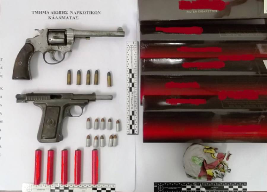 Η έρευνα των αστυνομικών έγινε χθες το πρωί, μετά από πληροφορίες που είχε στη διάθεσή της η υπηρεσία. Σύμφωνα με την ανακοίνωση της Αστυνομίας, κατά τον έλεγχο σε διάφορα σημεία του γραφείου τελετών βρέθηκαν: ένα πιστόλι, ένα περίστροφο, 15 φυσίγγια, 7,6 γραμ, χασίς, 40 πακέτα λαθραία τσιγάρα και 5 κροτίδες.