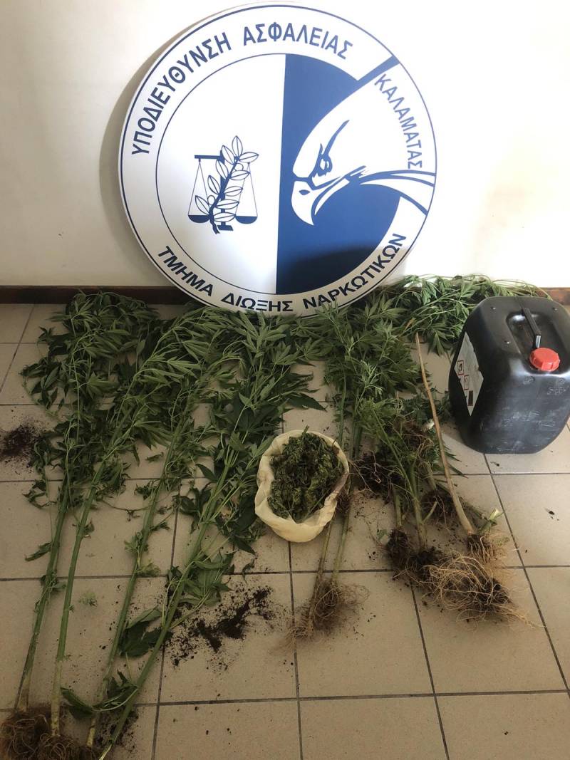 Ο πατέρας μάλιστα συνελήφθη από αστυνομικούς του Τμήματος Δίωξης Ναρκωτικών Καλαμάτας το μεσημέρι της περασμένης Τετάρτης -ενώ το προηγούμενο διάστημα είχε πετάξει στην προαναφερόμενη περιοχή το ελικόπτερο της Αστυνομίας για να εντοπίσει τυχόν καλλιέργειες χασίς. Επιπλέον, οι αστυνομικοί κατάσχεσαν και 188 γραμ. χασίς, τα οποία οι κατηγορούμενοι πατέρας και γιος φέρονται ότι είχαν προλάβει να συγκομίσουν από τα φυτά.