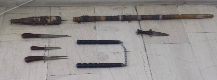 Κατά την επιχείρηση βρέθηκαν και κατασχέθηκαν 4 μαχαίρια, κυνηγετικό όπλο, ξύλινο κοντάρι με αποσπώμενη λόγχη, τρία οχήματα και γκλόπ πολεμικών τεχνών τύπου «νουντσάκου», ενώ εξιχνιάστηκαν 3 περιπτώσεις κλοπής σε οχήματα και μία κλοπή οχήματος.