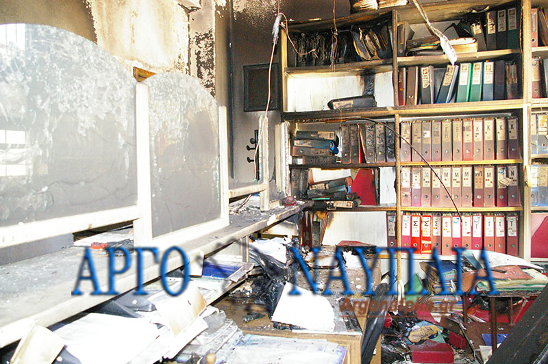 Συγκεκριμένα, οι δράστες στις 2.00 τα ξημερώματα έσπασαν τα τζάμια των παραθύρων ισογείου κτιρίου στο 3ο χιλιόμετρο της παραλιακής οδού Ναυπλίου-Νέας Κίου, όπου στεγάζεται η διεύθυνσης Μεταφορών και Επικοινωνιών της Περιφερειακής Ενότητας Αργολίδας και πέταξαν εύφλεκτο υλικό, πιθανότατα μπουκάλια με βενζίνη και φιαλίδια υγραερίου στα γραφεία έκδοσης διπλωμάτων και στο αρχείο, με αποτέλεσμα να ξεσπάσει πυρκαγιά.