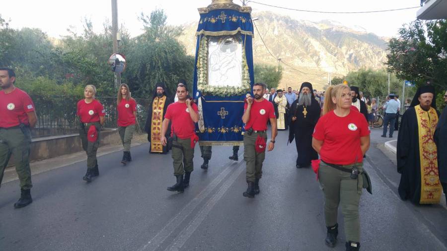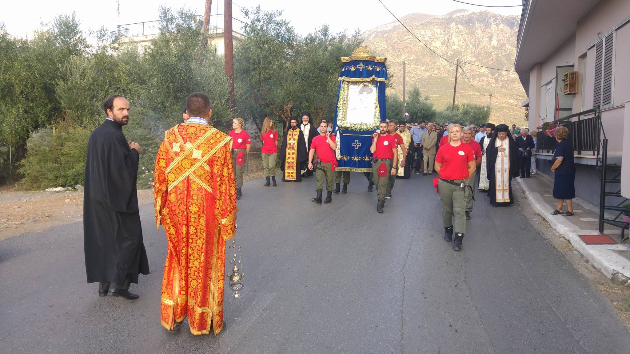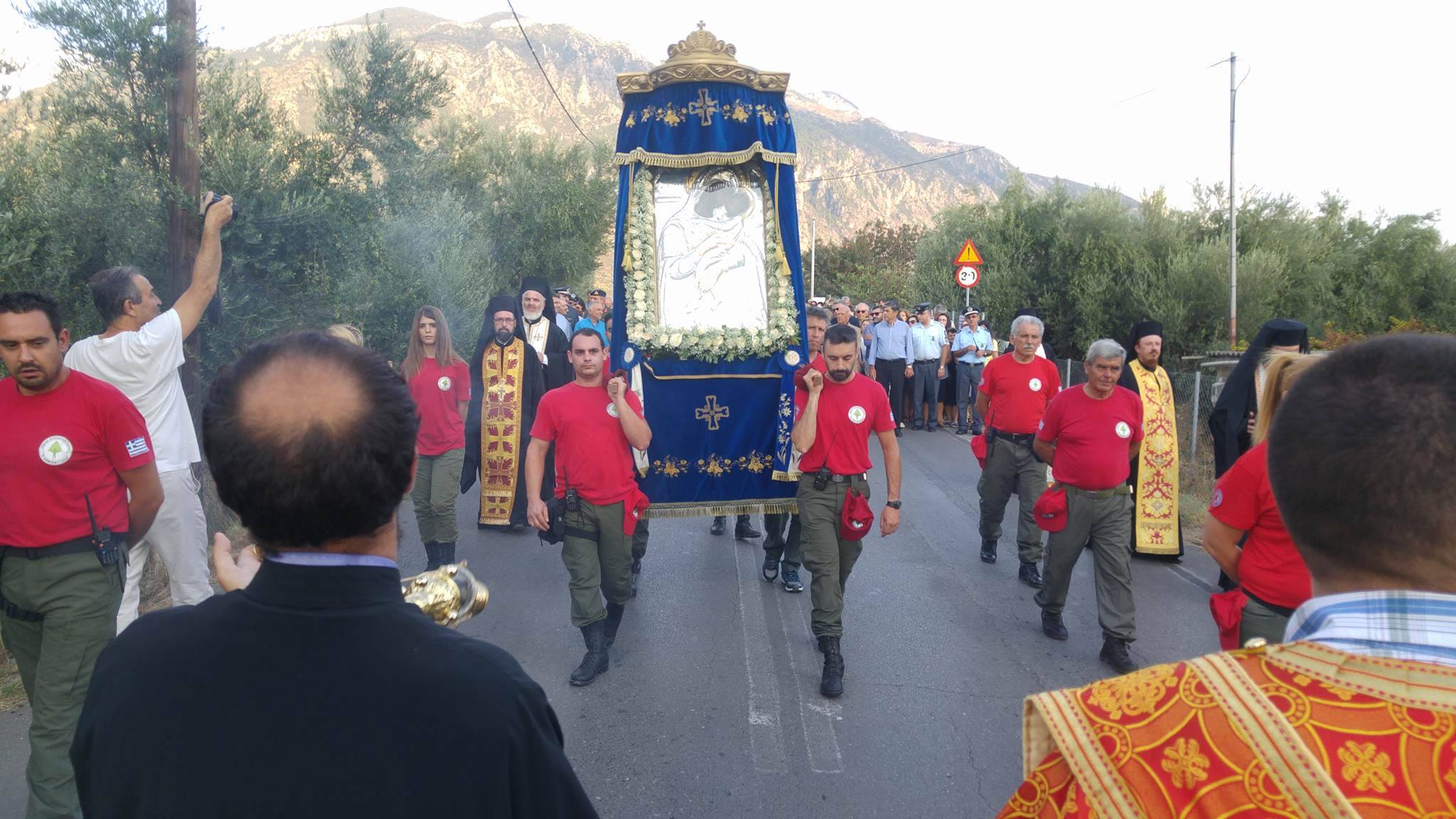 Η κάθοδος της εικόνας από τη μονή της Δήμιοβας ξεκίνησε στη 1 τα ξημερώματα και μετά τις 2.30 το πρωί, η εικόνα σταμάτησε για 50 περίπου λεπτά στο ναό Κοιμήσεως της Θεοτόκου Ελαιοχωρίου, όπου εψάλη ο παρακλητικός κανόνας της Παναγίας.