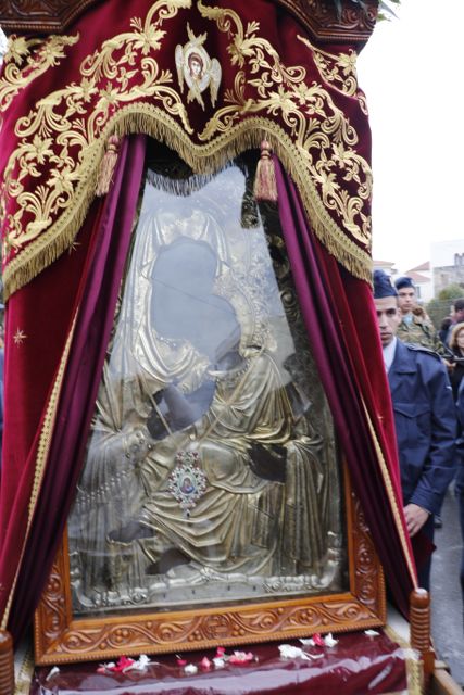 Το πρωί στο μητροπολιτικό ναό της Υπαπαντής τελέστηκε πολυαρχιερατική θεία λειτουργία και δοξολογία. Στις 11 ξεκίνησε η λιτάνευση της εικόνας της Παναγίας στους κεντρικούς δρόμους της πόλης. Για μια ακόμα φορά ο Πρόεδρος της Δημοκρατίας παραβίασε το πρωτόκολλο και στη γειτονιά των παιδικών του χρόνων, στην οδό Καίσαρη, βγήκε στην άκρη και χαιρέτισε τους παλιούς γνωστούς του και τους ευχήθηκε χρόνια πολλά για τη γιορτή της πόλης.