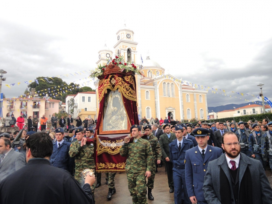 Βοήθησε ο καιρός και η Καλαμάτα γιόρτασε σήμερα με επισημότητα την πολιούχο της Υπαπαντή, παρουσία πιστών από κάθε γωνιά της Μεσσηνίας και από διάφορες περιοχές της χώρας. Παρά το βροχερό καιρό, κατά τη διάρκεια της λιτανείας της εικόνας της Παναγίας δεν έβρεξε και για πολύ λίγο χρειάστηκε να ανοίξουν οι ομπρέλες. Την κυβέρνηση στις εκδηλώσεις εκπροσώπησε ο υφυπουργός Εθνικής Αμυνας Γιώργος Γεωργίου, ενώ παρέστησαν οι βουλευτές Κωνσταντίνος Μαρκόπουλος (εκπροσώπησε τον πρόεδρο της Ν.Δ. Αντώνη Σαμαρά), Δημήτρης Κουσελάς (αποχώρησε στην αρχή της λιτανείας) και Γιάννης Λαμπρόπουλος, οι αντιπεριφερειάρχες Παναγιώτης Αλευράς και Ντίνα Νικολάκου, οι δήμαρχοι Καλαμάτας Παναγιώτης Νίκας (επικεφαλής του Δημοτικού Συμβουλίου), Μεσσήνης Στάθης Αναστασόπουλος, Οιχαλίας Φίλιππος Μπάμης κι εκπρόσωποι αρχών και φορέων. Στην πολυαρχιερατική θεία λειτουργία χοροστάστησαν οι μητροπολίτες Μεσσηνίας Χρυσόστομος, Βεροίας Παντελεήμων, Ελευθερούπολης Χρυσόστομος, Σερβίων και Κοζάνης Παύλος, Πατρών Χρυσόστομος, Κισσάμου και Σελίνου Αμφιλόχιος, Ιλίου Αθηναγόρας και ο επίσκοπος Μαρεώτιδος Γαβριήλ.